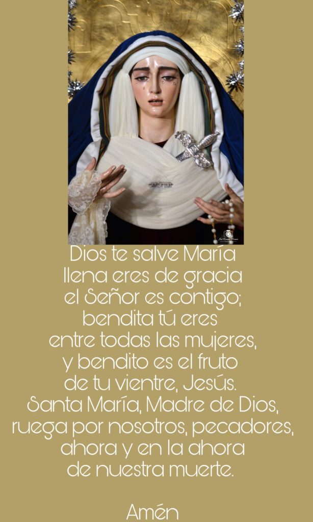 Recemos juntos el Padrenuestro, el Ave María y Gloria cada día, a las 15.00 horas, coincidiendo con el horario de nuestra salida procesional el Lunes Santo.