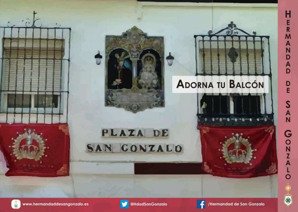 La Hermandad de San Gonzalo se une a la iniciativa popular de adornar nuestros balcones y ventanas con colgaduras con motivo de la Semana Santa, pudiéndose emplear las propias de la coronación de Nuestra Señora de la Salud. Animamos a que compartáis luego las fotografías de nuestros domicilios en Twitter empleando el hashtag #AdornaTuBalcónConSanGonzalo.