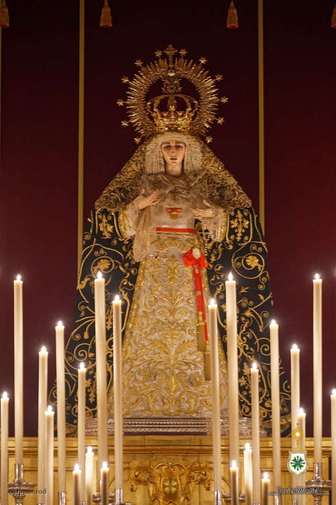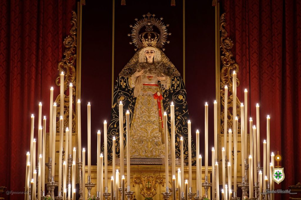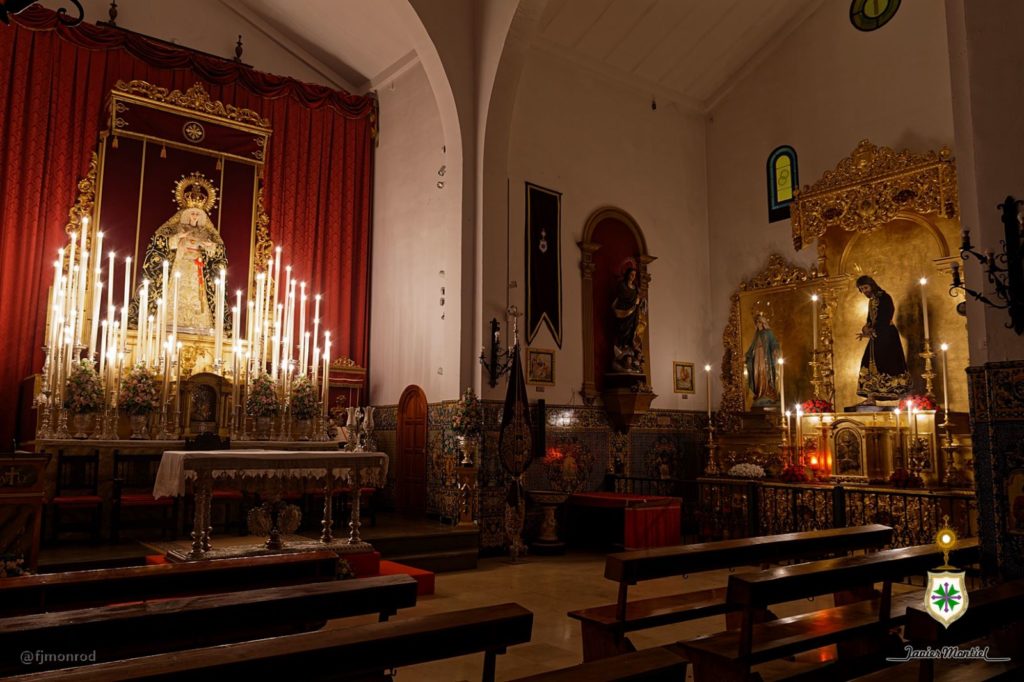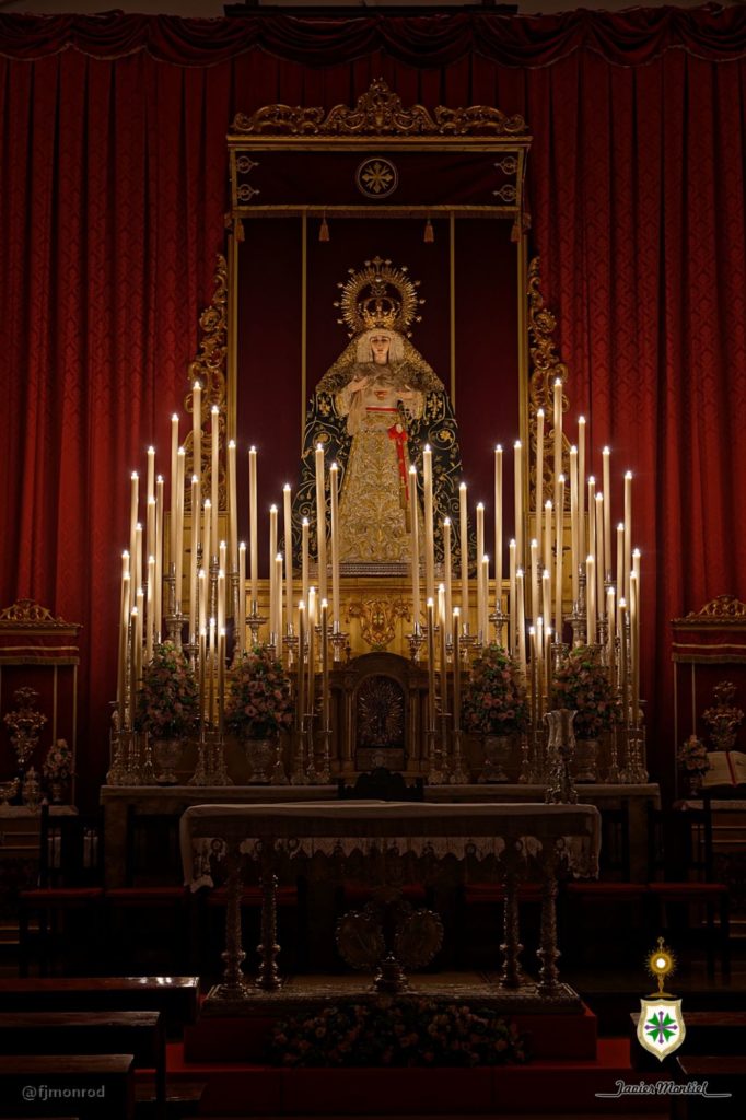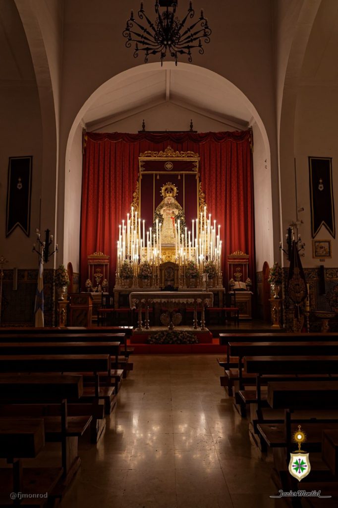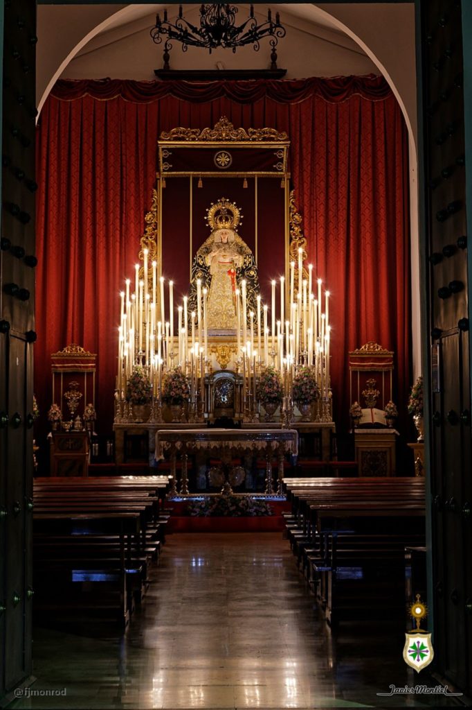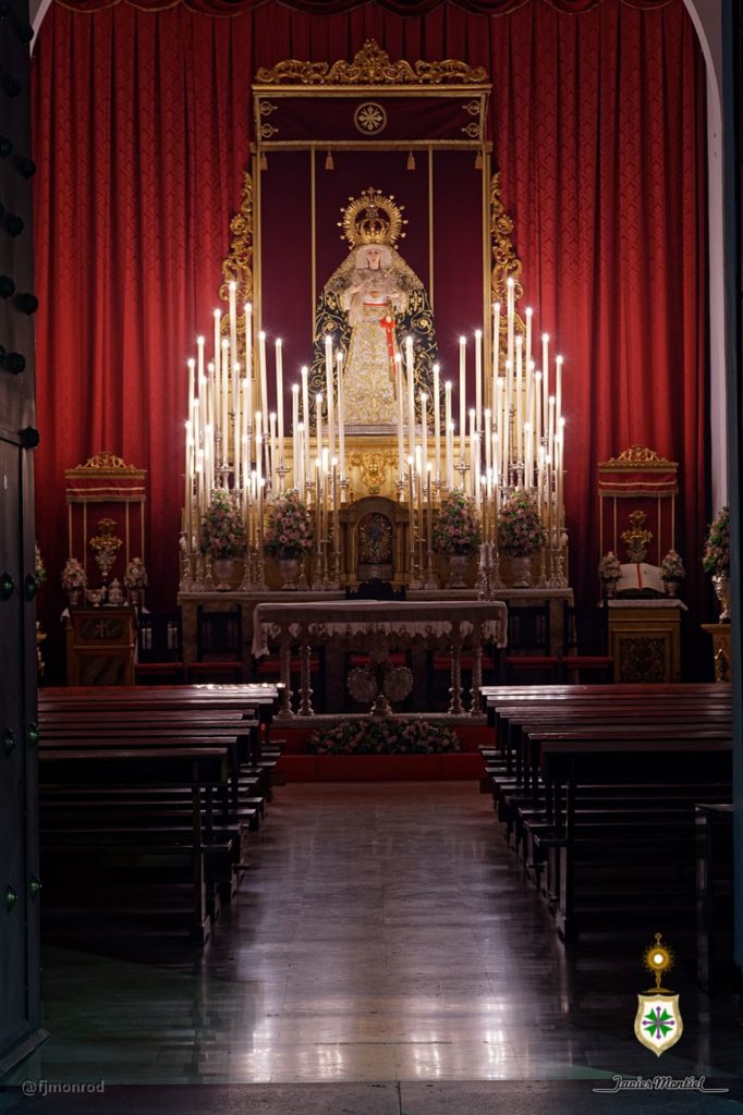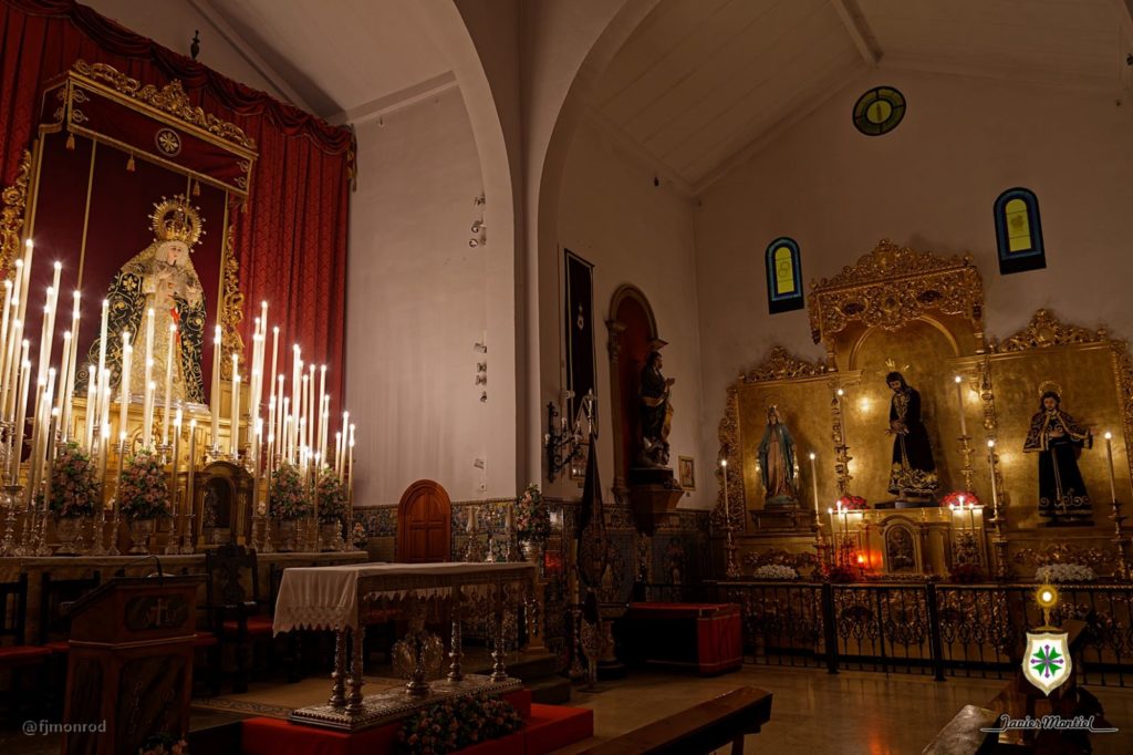 Concluyó el solemne triduo en honor a Nuestra Señora de la Salud, por lo que este culto ya forma parte de nuestros recuerdos. Este próximo fin de semana, nuestra amada titular se hallará expuesta a la veneración de los fieles, pero antes queremos recordarla en el aparato de cultos tan cuidadosamente creado por el equipo de priostía pero con una visión que no se suele ver en persona, como es con toda la candelería encendida pero sólo a la luz de las velas.