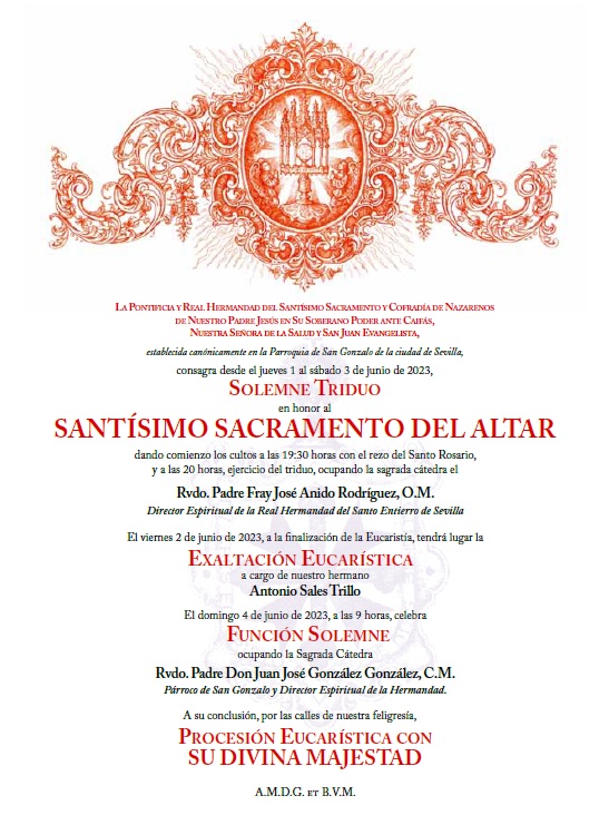 Es una oportunidad para los hermanos de San Gonzalo, después de la estación de penitencia del Lunes Santo, para seguir haciendo pública protestación de nuestra fe, y qué mejor manera que honrando a Dios en la Eucaristía.