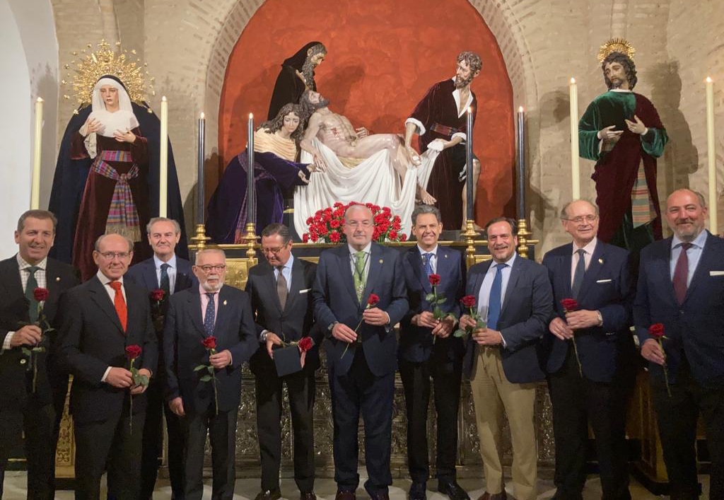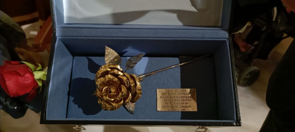 Al término de la celebración, el delegado de día en la junta superior del Consejo General de Hermandades y Cofradías, Manuel Martínez de Pinillos, procedió a realizar la entrega del donativo de la acción social conjunta al taller para mujeres en riesgo de exclusión social de la Parroquia de la Candelaria, en la barriada de Los Pajaritos. Posteriormente, ante el Santísimo Cristo de la Caridad, el hermano mayor de Santa Marta, Antonio Távora, entregó a los de las demás corporaciones de la jornada una rosa roja que, en conjunto, fueron en la estación de penitencia bajo la sábana del titular cristífero, además de depositar en las manos de nuestro hermano mayor, Manuel Lobo, la rosa de pasión con la que la Cadena SER premió la acción social conjunta de estas cofradías hace unos años.