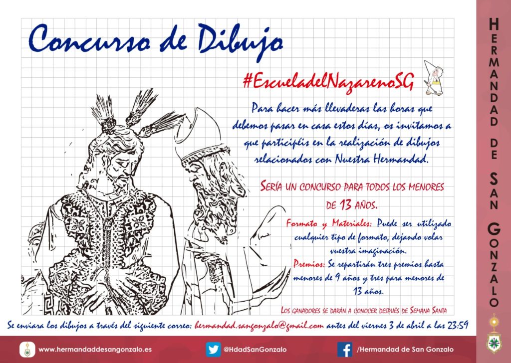 Hola!!quedan poco para que finalice nuestro concurso de dibujo y aun no hemos recibido el tuyo!!!Animate y participa!!! Si tienes menos de 13 años,haz tu dibujo relacionado con nuestra Hermandad y remitelo al mail. !Te esperamos!