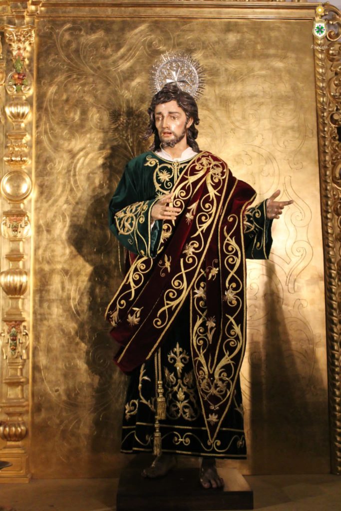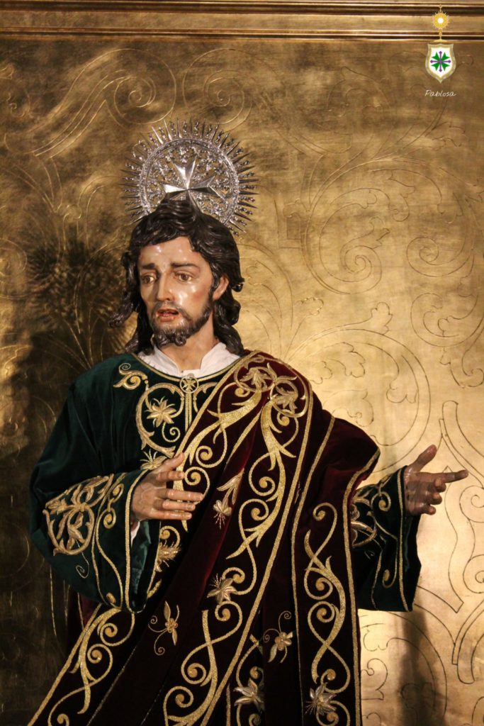 Nuestro Padre Jesús en Su Soberano Poder y San Juan Evangelista han sido revestidos por nuestro hermano Mateo Domingo González Gago en la tarde de este jueves 22 de diciembre para estos días de Navidad que ya se avecinan. Nuestro titular cristífero luce la túnica blanca, tan habitual en estas fechas de su Natividad, como signo triunfal y festivo por su venida al mundo. El discípulo amado luce los colores propios de su iconografía, rojo en el mantolín y verde en la túnica, luciendo concretamente las prendas bordadas por José Librero Fernández con motivo, igualmente, de su festividad el próximo martes 27 de diciembre, jornada en la que se celebrará misa solemne en honor del Patrón de la juventud cofrade a las 20 horas.