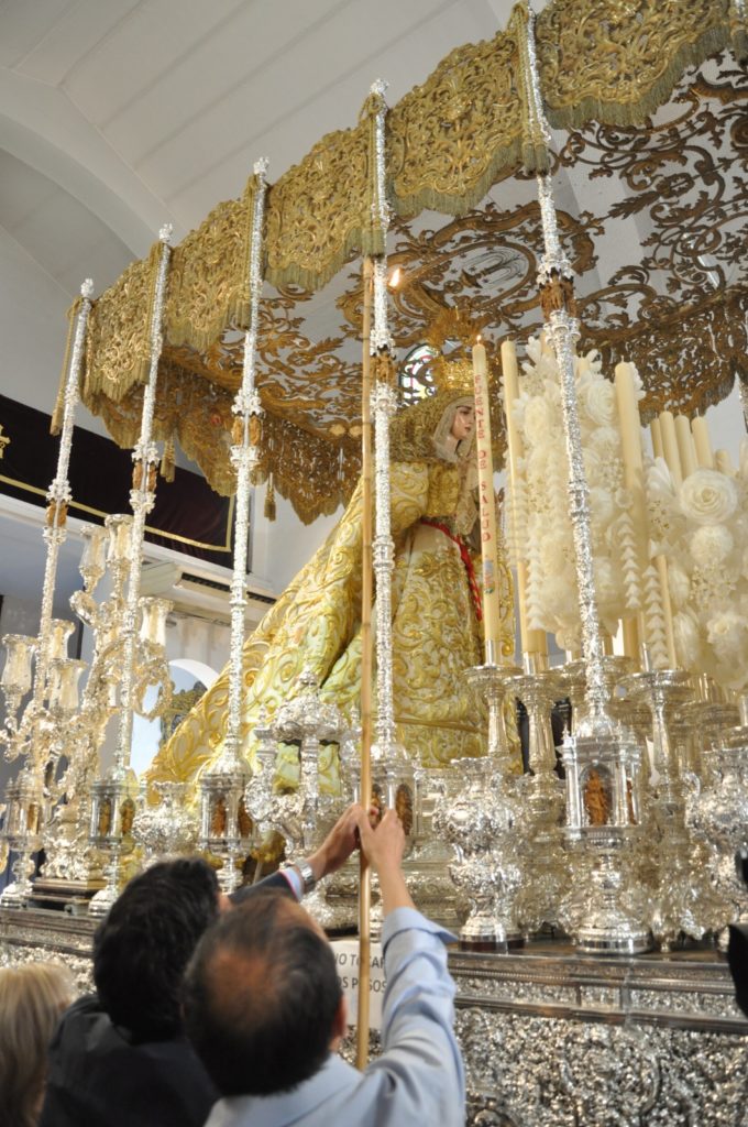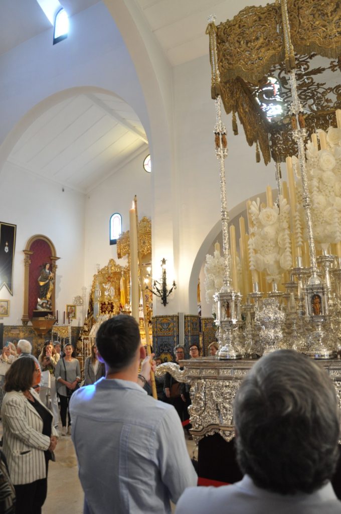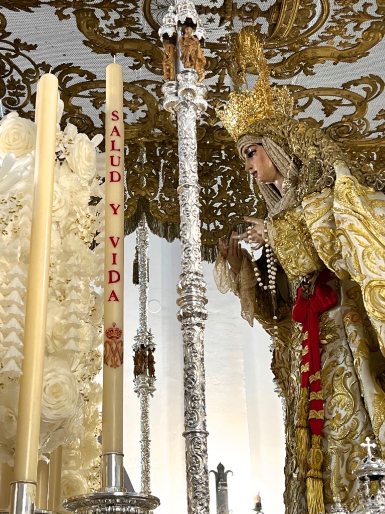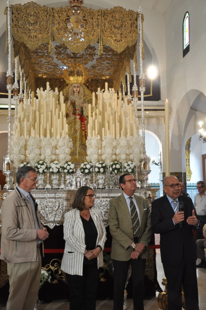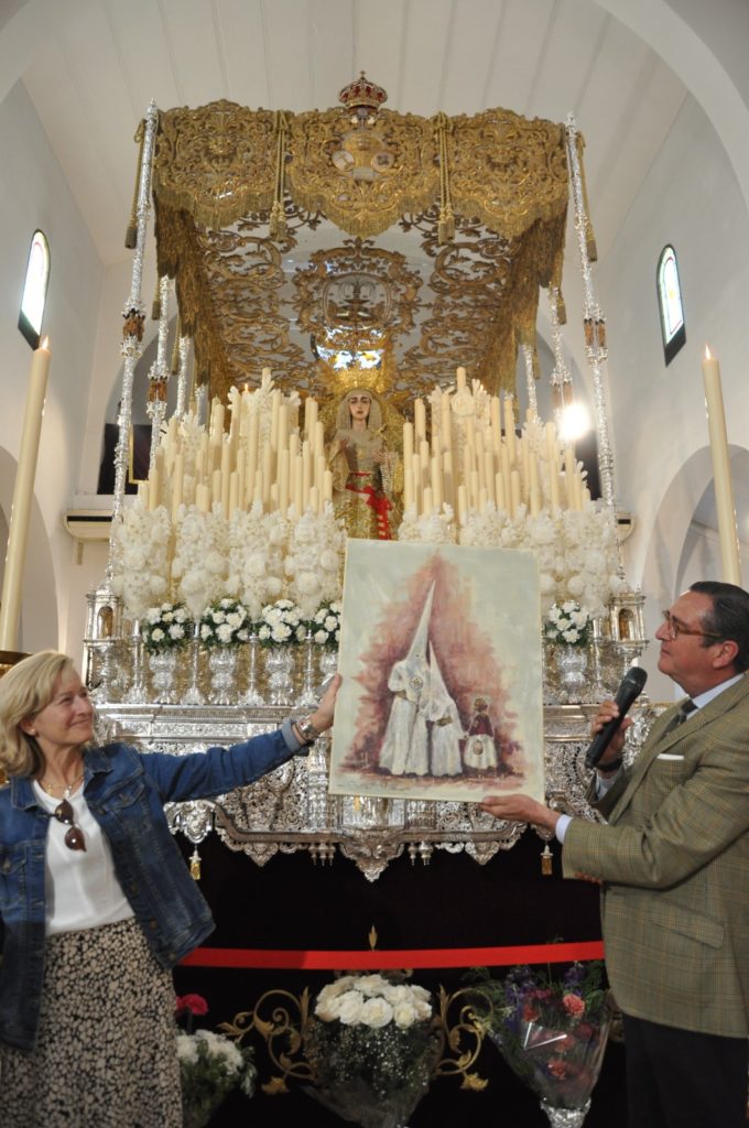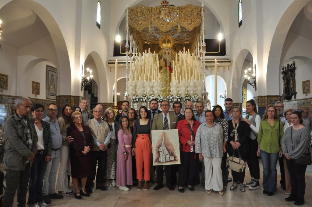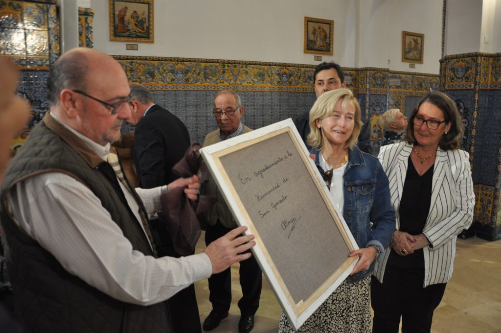 Fiel a la tradición, al mediodía del miércoles 29 de marzo, nuestra Hermandad de San Gonzalo volvió a celebrar el acto de encendido del cirio dedicado a los donantes de órganos en la parroquia. Con la presencia del doctor José Pérez Bernal, principal impulsor de esta iniciativa en nuestras cofradías, y de Regina Serrano, delegada Territorial en Sevilla de la Consejería de Salud y Familias en la Junta de Andalucía, el cirio fue encendido por los familiares de Óscar García Torres, hermano costalero nuestro fallecido la pasada semana y cuya familia ha donado sus órganos. Al final de esta cita, la Asociación Atmos hizo entrega al hermano mayor, Manuel Lobo, de un lienzo donde aparece un nazareno adulto de nuestra cofradía con otro niño y una monaguilla.