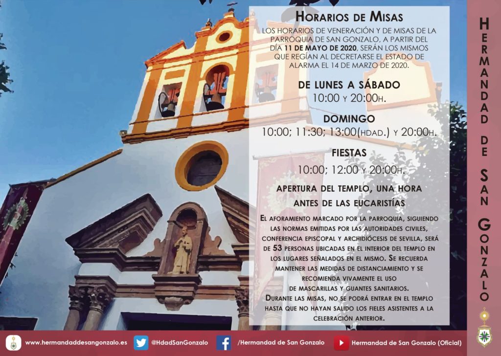 Los horarios de veneración y de misas de la parroquia de San Gonzalo, a partir del día 11 de mayo de 2020, serán los mismos que regían al decretarse el estado de alarma el 14 de marzo pasado.