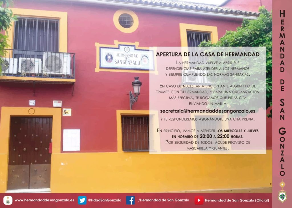 La hermandad vuelve a abrir sus dependencias para atender a los hermanos y siempre cumpliendo las normas sanitarias.