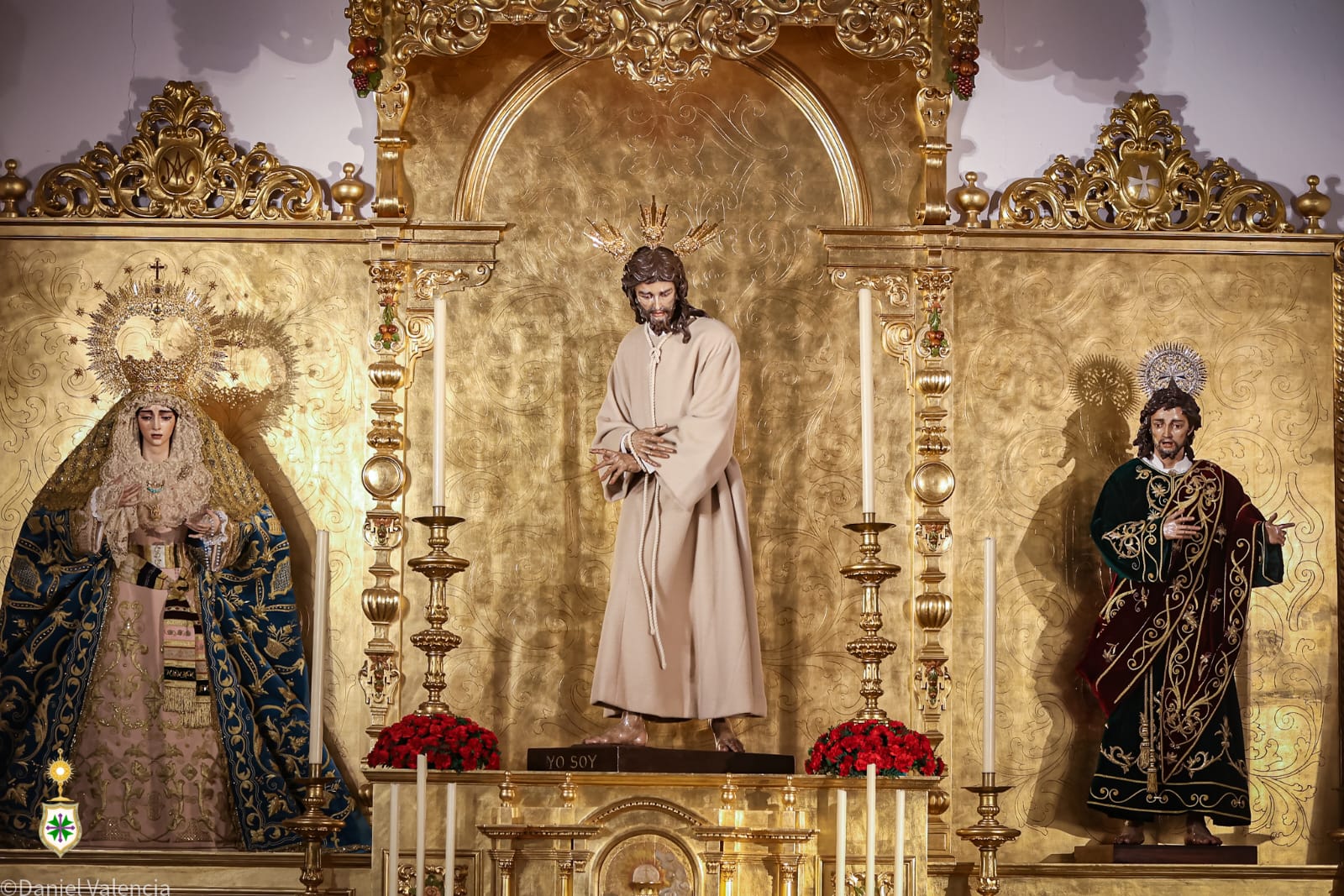 Nuestro Padre Jesús en Su Soberano Poder y San Juan Evangelista han sido revestidos por nuestro hermano Mateo Domingo González Gago en la tarde del miércoles 20 de diciembre para estos días de Navidad que ya se avecinan. Nuestro titular cristífero luce la túnica blanca denominada «de piel de camello», tan habitual en estas fechas de su Natividad, como signo triunfal y festivo por su venida al mundo. El discípulo amado luce los colores propios de su iconografía, rojo en el mantolín y verde en la túnica, luciendo concretamente las prendas bordadas por José Librero Fernández con motivo, igualmente, de su festividad el próximo miércoles 27 de diciembre, jornada en la que se celebrará misa solemne en honor del Patrón de la juventud cofrade a las 20 horas.