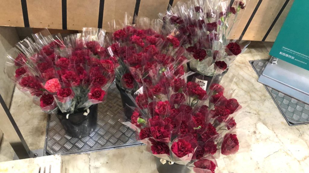 Las flores de Nuestro Padre Soberano y de Ntra. Sra. de la Salud para los residentes de Residencia de Ntra. Sra. de Consolación, de la Avenida de Coria y para los enfermos de Hospital Quirón Infanta Luisa.