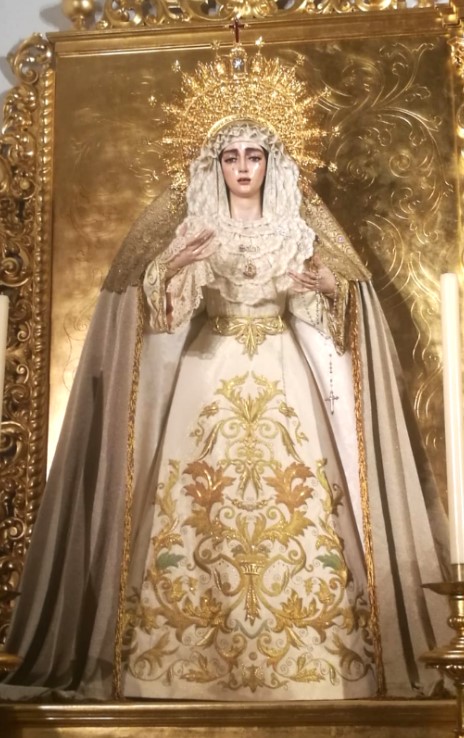 Nuestra Señora de la Salud luce actualmente en su altar un manto que ha sido recuperado. Se trata de una prenda de tisú que, en su día, sirvió para la salida procesional de nuestra titular mariana en su paso de palio en la estación de penitencia de cada Lunes Santo. Muchos hermanos lo recordarán porque era el manto que poseía piezas bordadas en su cola.