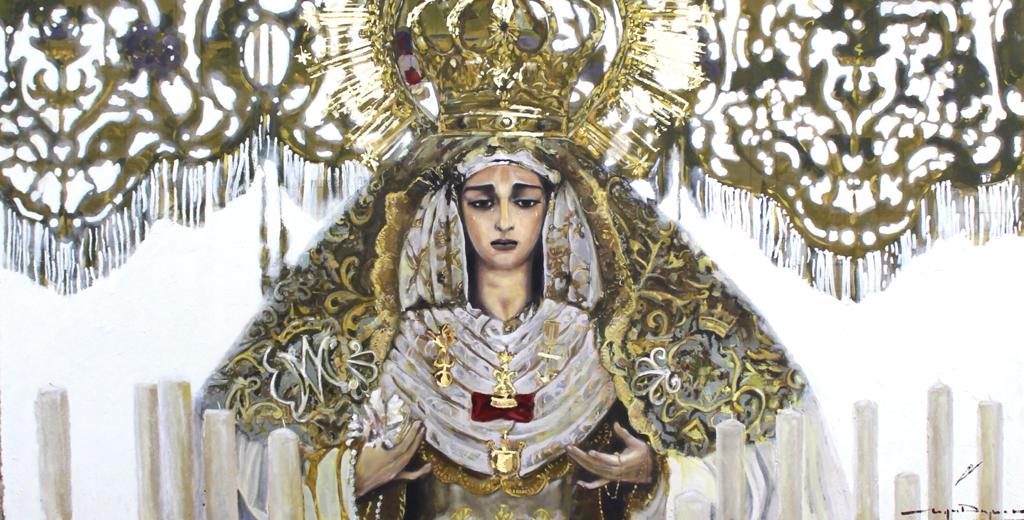Se han empleado técnicas mixtas sobre una capa de gesso (sustancia de color blanco que consiste en una mezcla de aglutinantes, con tiza, yeso, pigmento o alguna combinación de los mismos), utilizándose para ello un formato de aglomerado prensado. En las zonas del rostro y las manos de la Virgen se han usado veladuras de óleo a través del uso de la paletilla junto a pintura acrílica en pasta.