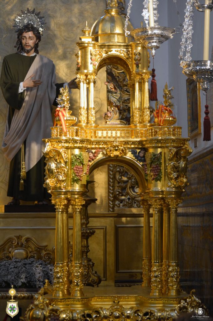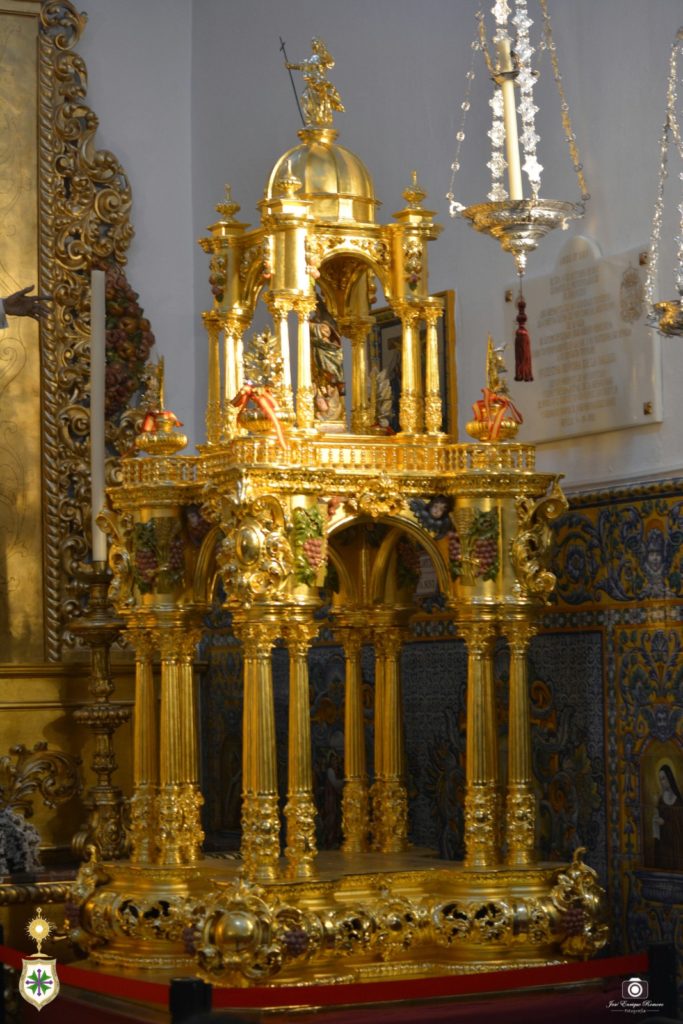 Durante estas semanas veraniegas, todo aquel que haya acudido a la santa misa a nuestro templo parroquial y a orar ante nuestros amados titulares, habrá contemplado que la custodia de asiento de nuestra hermandad se halla junto al altar de nuestras imágenes. La razón es bien sencilla: aprovechando el descenso de la actividad en nuestra casa de hermandad a lo largo del verano, se está acometiendo una serie de trabajos de acondicionamiento y mejora de los espacios expositivos de nuestras dependencias, y la custodia, dado su volumen, no podía ser ubicada en otro espacio de la casa, por lo que agradecemos a nuestro párroco y director espiritual las facilidades dadas para poder depositar esta importante pieza de nuestro patrimonio en la propia parroquia.