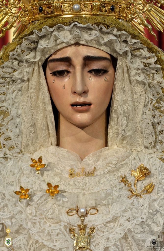 En la tarde del sábado 30 de agosto, Nuestra Señora de la Salud se halla ante el retablo de los titulares de nuestra hermandad en la Parroquia de San Gonzalo con motivo de su misa solemne del domingo 31 y besamano como conmemoración de su antigua festividad del pasado 26 de agosto.