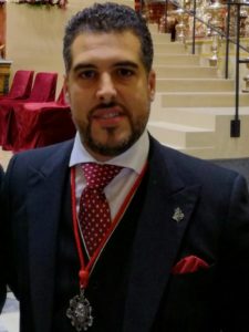 Nuestro cartero nació en Sevilla en 1982, recibiendo las aguas del bautismo en la Parroquia de San Román, si bien la primera comunión y la confirmación las recibió en nuestra Parroquia de San Gonzalo. A lo largo de su vida ha sido nazareno, acólito y miembro del grupo joven, hasta que en 2001 comenzó a formar parte de la cuadrilla de hermanos costaleros de Nuestro Padre Jesús en Su Soberano Poder. Entre 2000 y 2004 fue auxiliar de priostía cuando era hermano mayor Mateo Domingo González Gago. En nuestros días es miembro del coro de nuestra hermandad. Como cofrade, además de a la nuestra, pertenece a las hermandades de los Gitanos, Pasión y Muerte, la Exaltación, el Santo Entierro, San Isidoro y el Rocío de Triana.