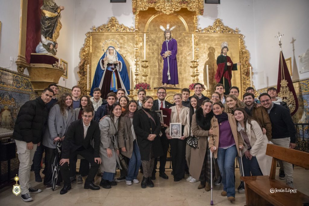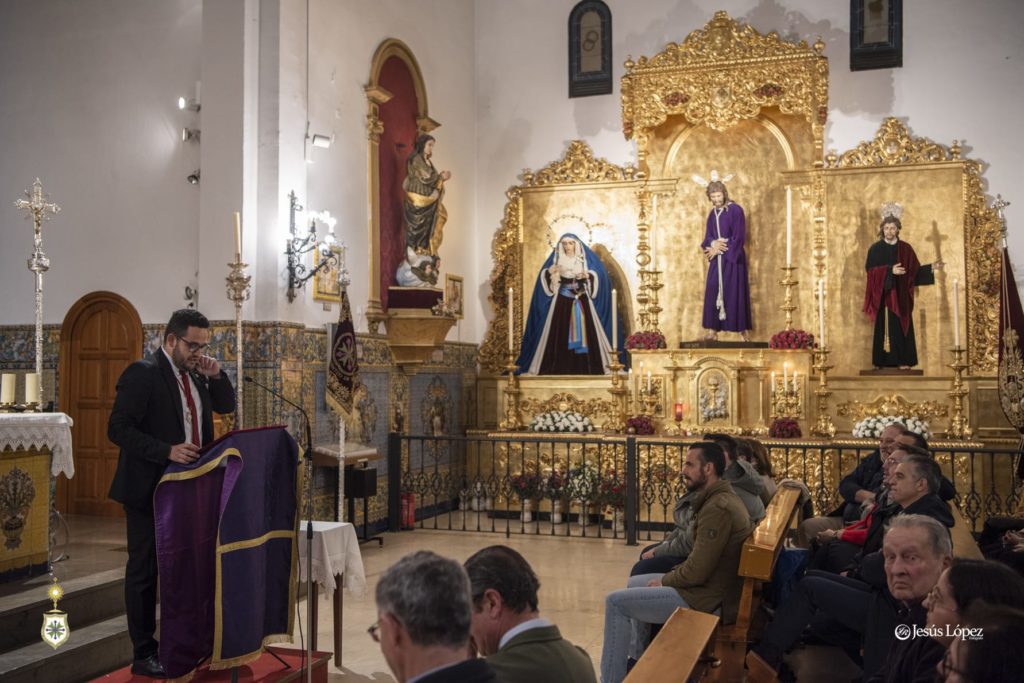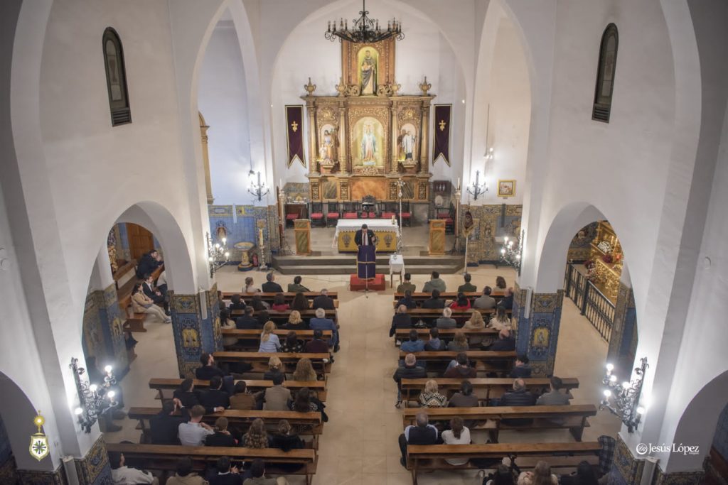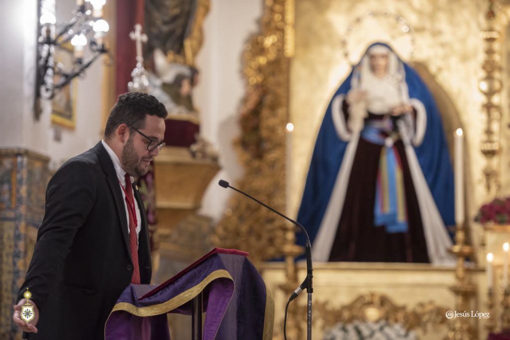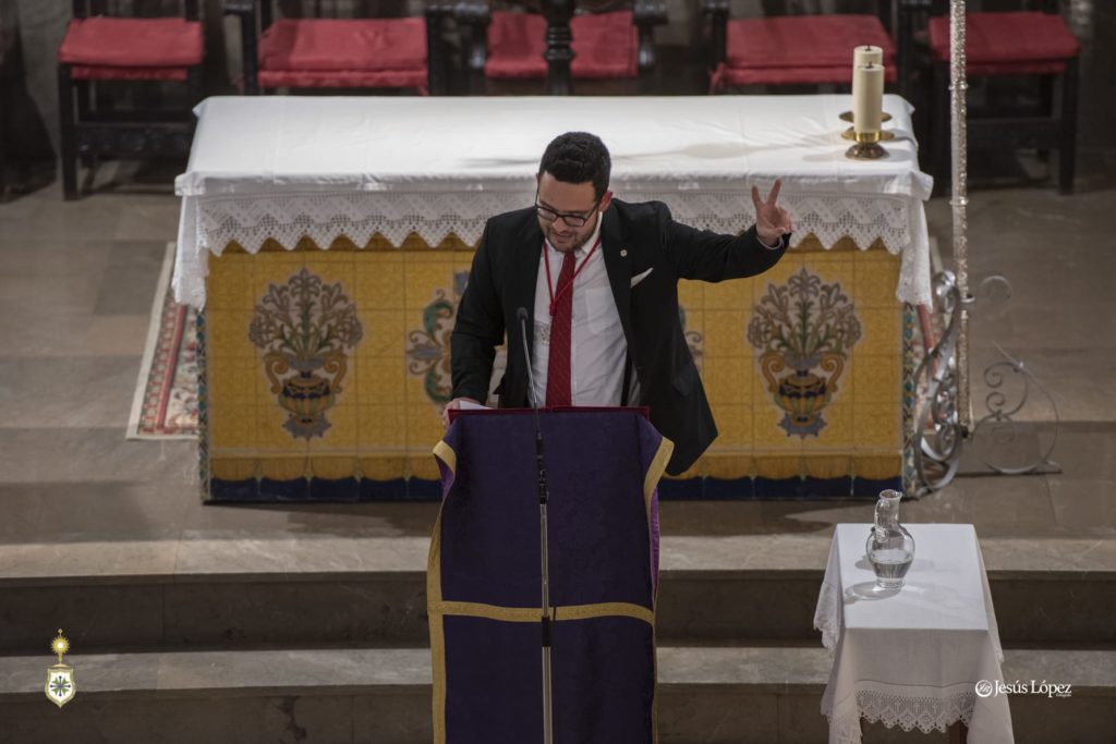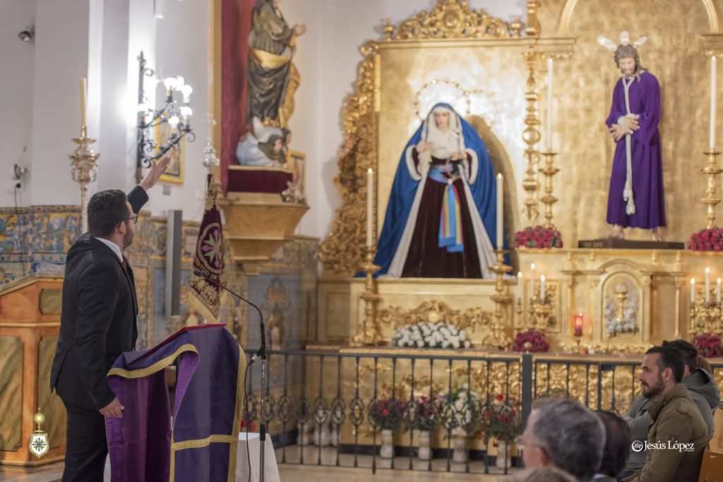 Bajo la atenta mirada de nuestros benditos titulares, el pasado viernes 8 de marzo, por la noche, nuestro hermano Pablo Sánchez Arias, conocido en el seno de nuestra corporación más cariñosamente como Pablosa, pronunció la XIX edición del Pregón de la Juventud de la Hermandad en nuestra Parroquia de San Gonzalo, llenando todos los bancos ante la asistencia de un público que aguardaba, expectacte, la intervención oratoria de este joven periodista.