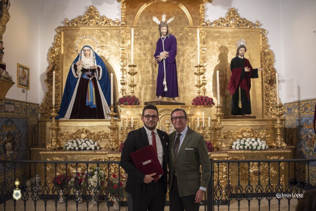Al concluir su intervención, el hermano mayor, Manuel Lobo Punta, agradeció al pregonero su trabajada pieza lírica, y a la presentadora el bello texto con el que dio a conocer ciertos detalles personales del pregonero. Como asistente de excepción no faltó tampoco nuestro párroco y director espiritual, el padre Juan José González González.