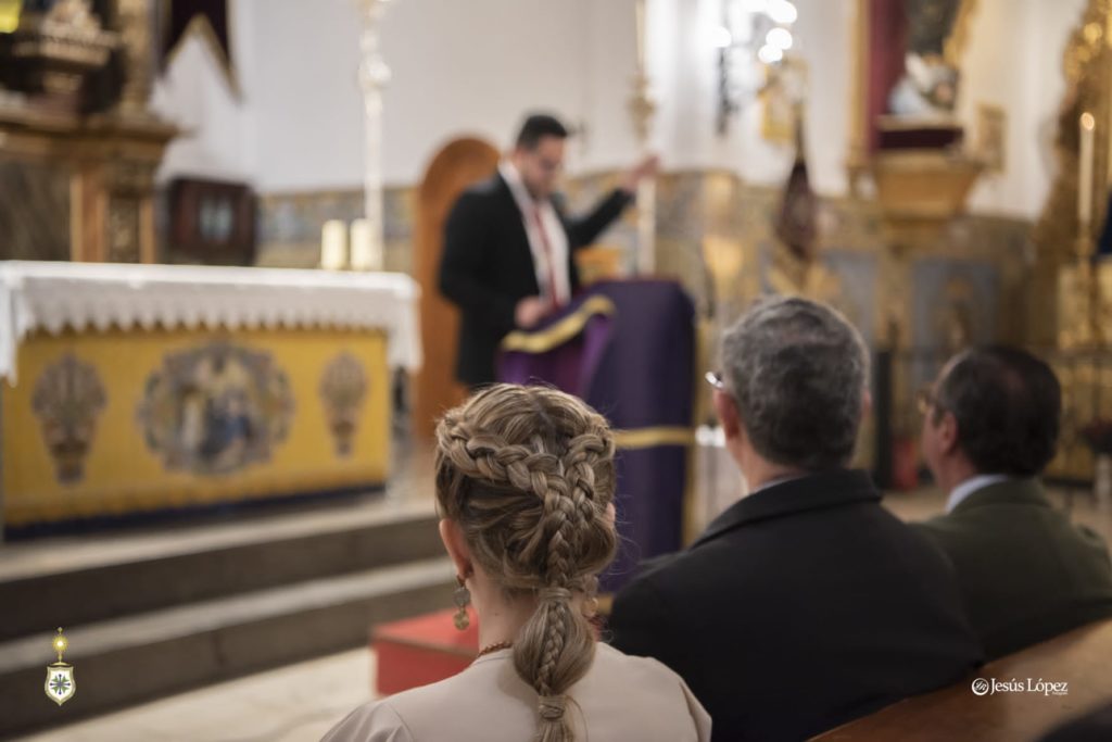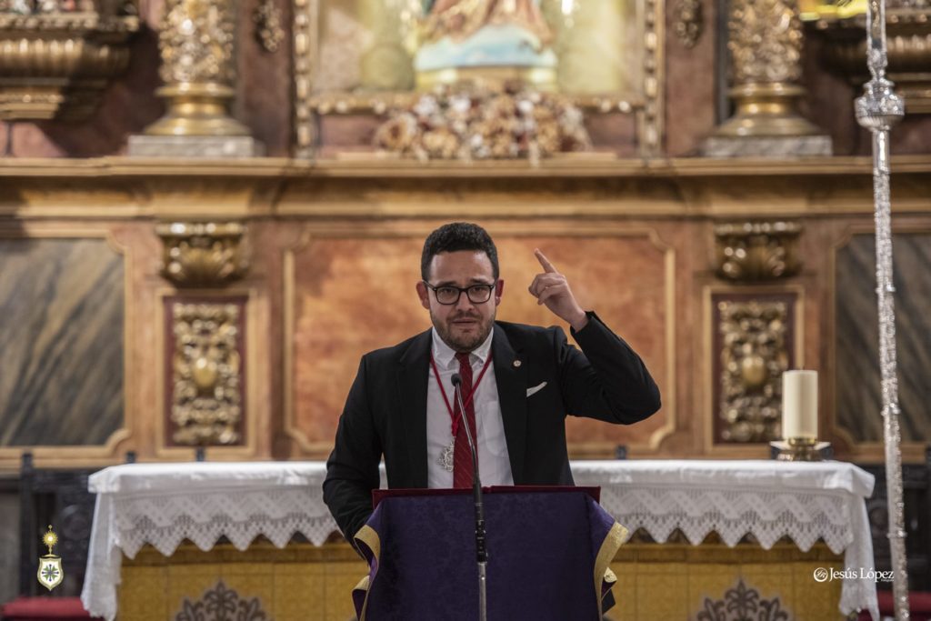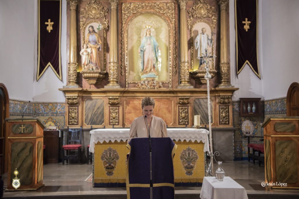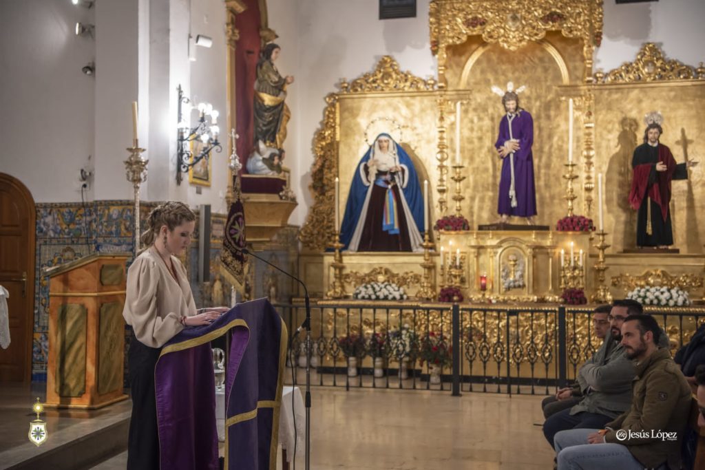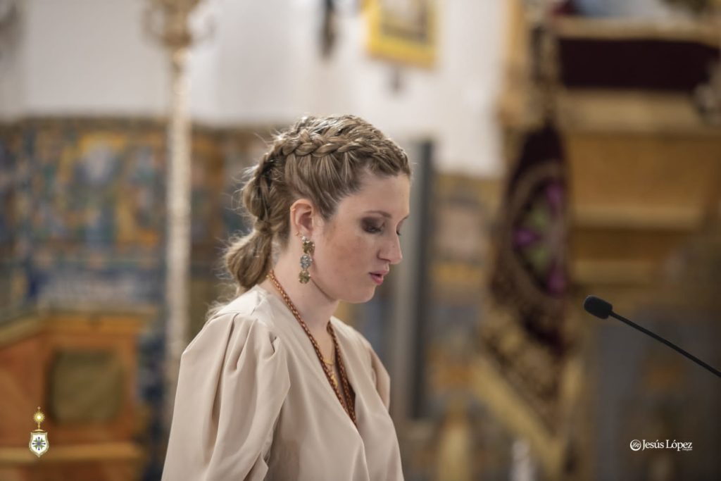 La presentación fue realizada por nuestra hermana Cristina del Pilar Montenegro Torres, quien igualmente realizó una bellísima disertación para dar a conocer el perfil del pregonero. De ella, además, puede destacarse, así mismo, la elegancia de la indumentaria que lució para un acto cuaresmal de estas características.