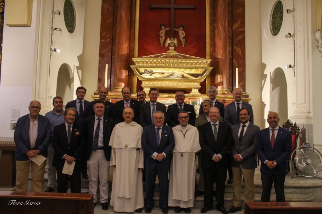 Los hermanos mayores de las hermandades participantes en el Santo Entierro Grande con la junta de gobierno de ésta y el presidente del Consejo