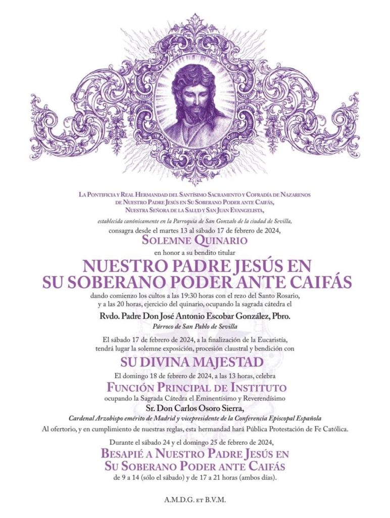 Se aproxima una nueva Cuaresma y, con ella, la celebración del solemne quinario en honor a Nuestro Padre Jesús en Su Soberano Poder, que arrancará el próximo martes 13 de febrero. Ante tal motivo, nuestras imágenes titulares ya han sido ubicadas en el altar mayor de nuestra Parroquia de San Gonzalo, trabajando la priostía en un hermoso aparato de cultos que será culminado en próximos días con la fundición de toda la cera que iluminará este altar.
