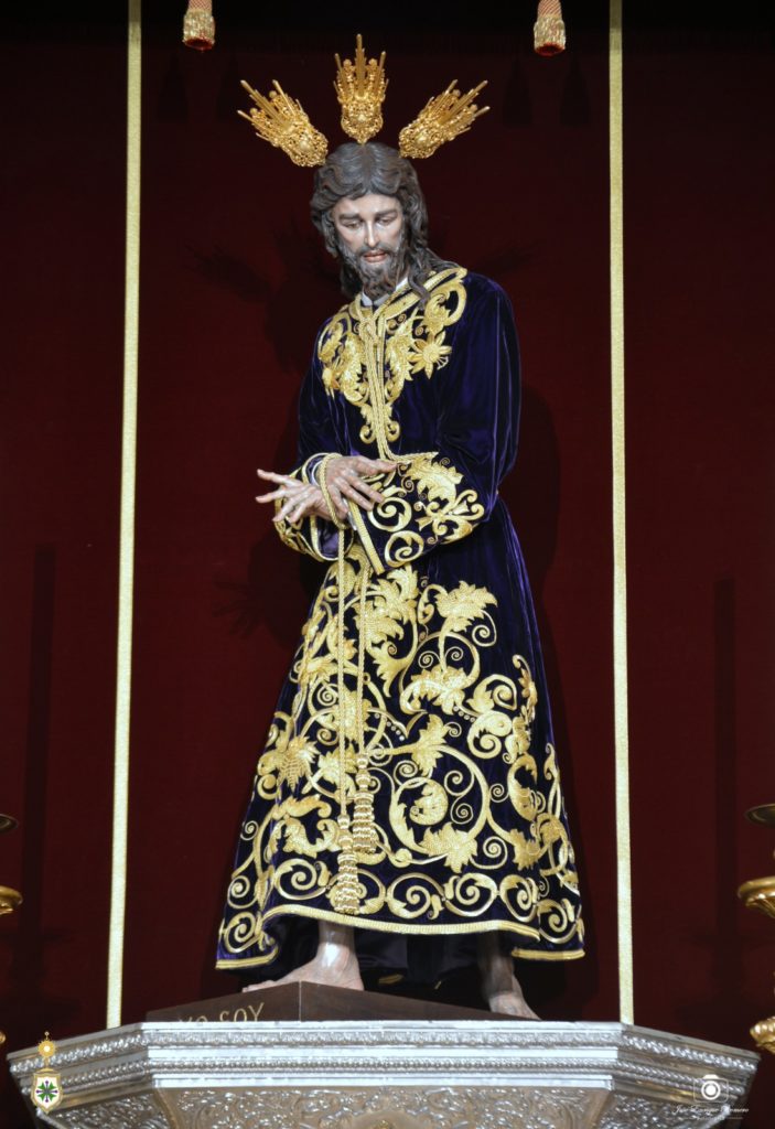 Nuestro titular cristífero ha sido revestido por nuestro hermano Mateo Domingo González Gago con la túnica morada bordada por José Librero Fernández en 2021, la cual fue estrenada aquel Lunes Santo en el que la pandemia impidió, por segundo año consecutivo, realizar la estación de penitencia a la Santa Iglesia Catedral.