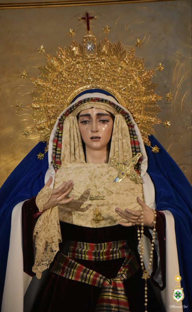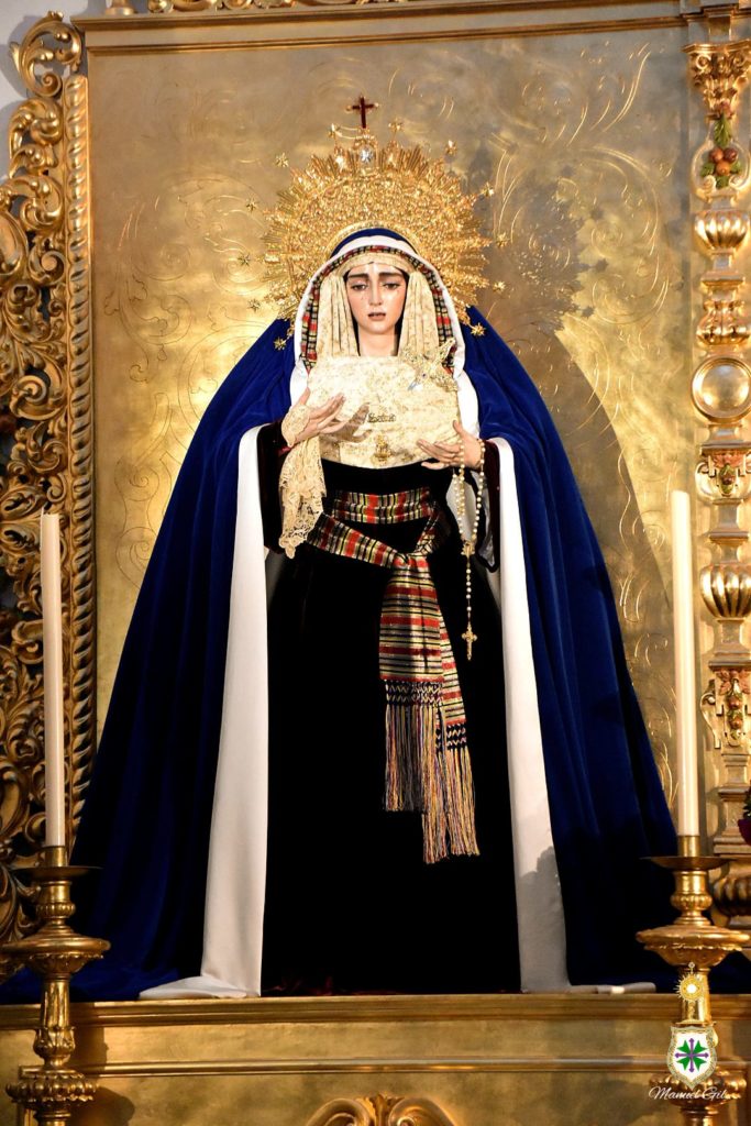 Igualmente, Antonio Bejarano Ruiz ha revestido de hebrea a Nuestra Señora de la Salud, que estrena fajín hebraico adquirido en Tierra Santa por una familia de la hermandad que lo ha donado para el ajuar de nuestra titular mariana.