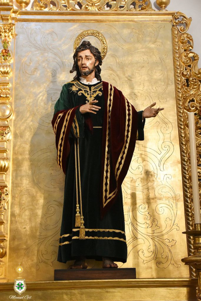 Se aproxima una nueva Cuaresma y, con ella, la celebración del solemne quinario en honor a Nuestro Padre Jesús en Su Soberano Poder. Ante tal motivo, nuestro titular ha sido revestido por nuestro hermano Mateo Domingo González Gago con la túnica morada bordada por José Librero Fernández en 2021 y que fue estrenada aquel Lunes Santo en el que la pandemia impidió por segundo año consecutivo realizar la estación de penitencia.