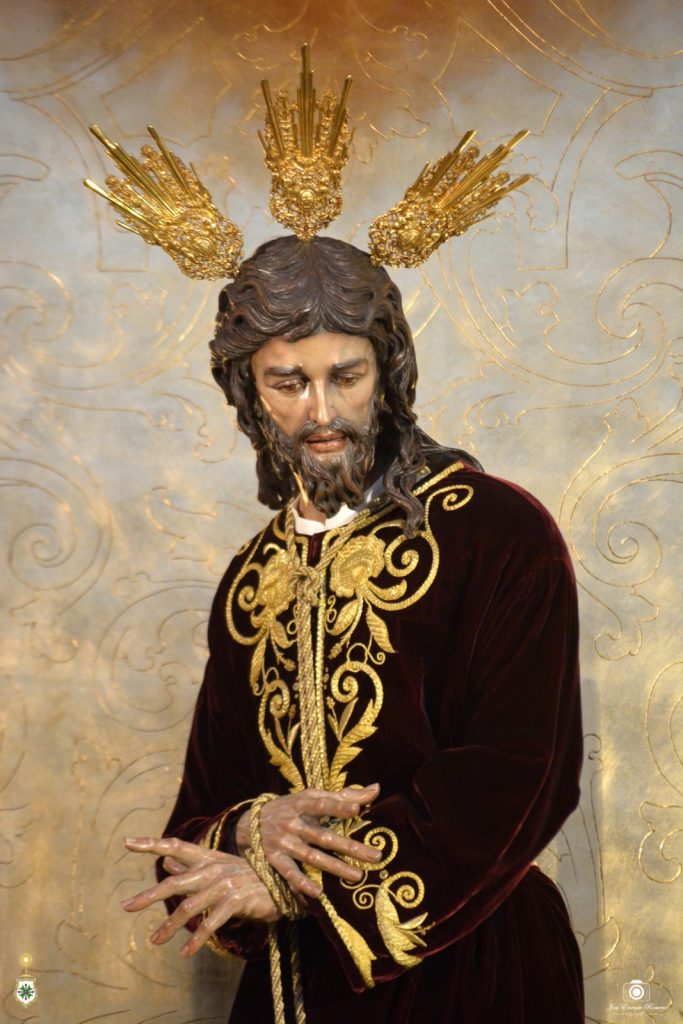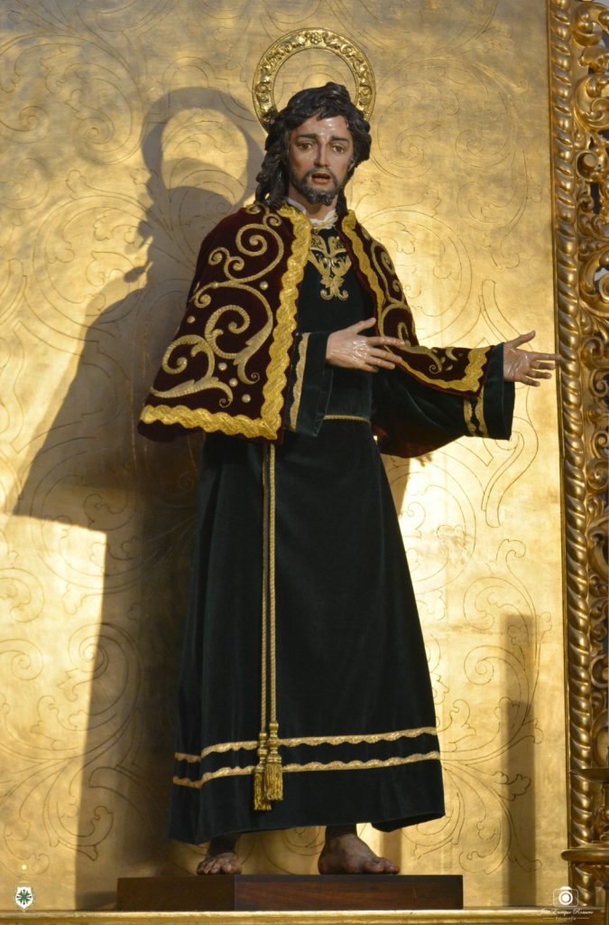 Por su parte, Nuestro Padre Jesús en Su Soberano Poder ha sido revestido por nuestro hermano Mateo Domingo González Gago con la túnica burdeos bordada por José Librero Fernández en 2019 con diseño del mismo artista, mientras que San Juan Evangelista se nos presenta con la túnica y la capa en las que se reutilizan algunos bordados procedentes de la cola del antiguo manto de salida de Nuestra Señora de la Salud.