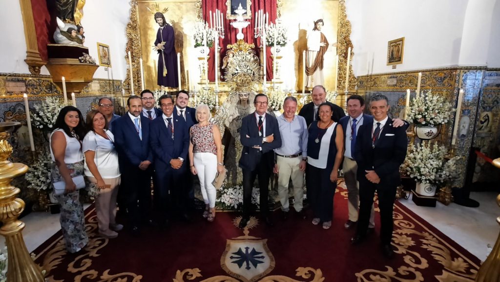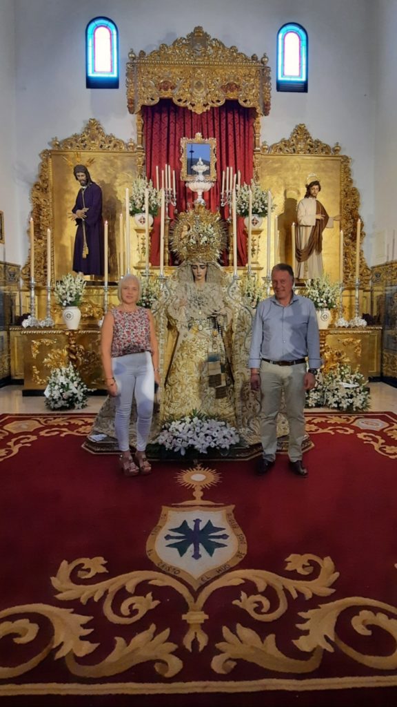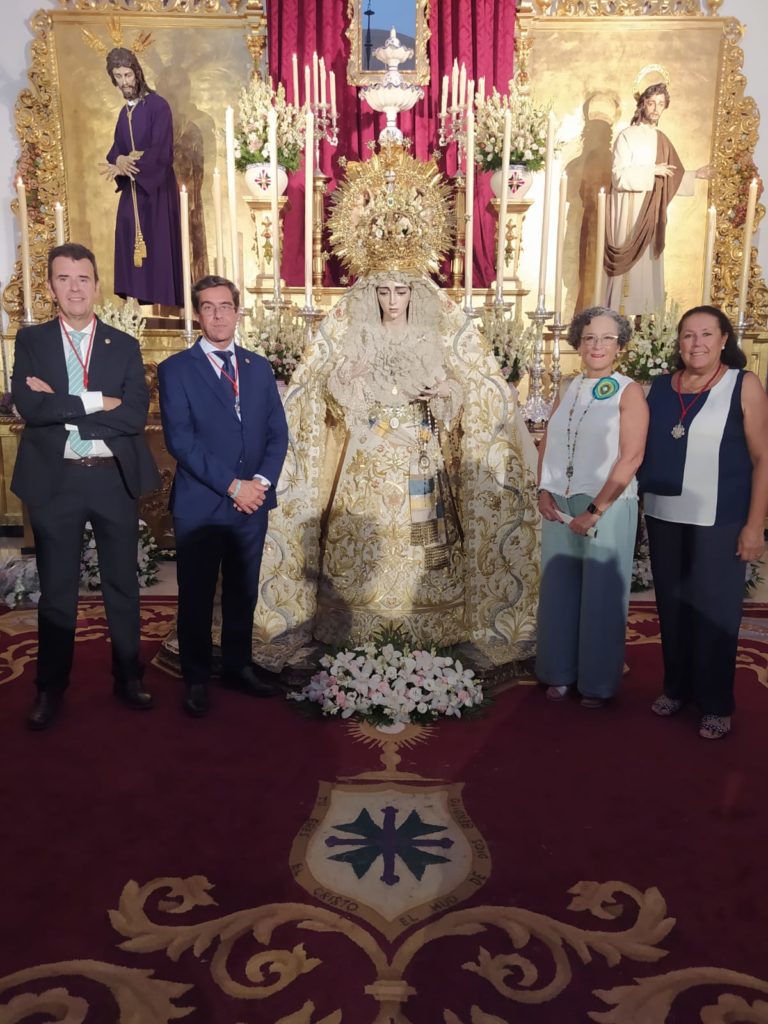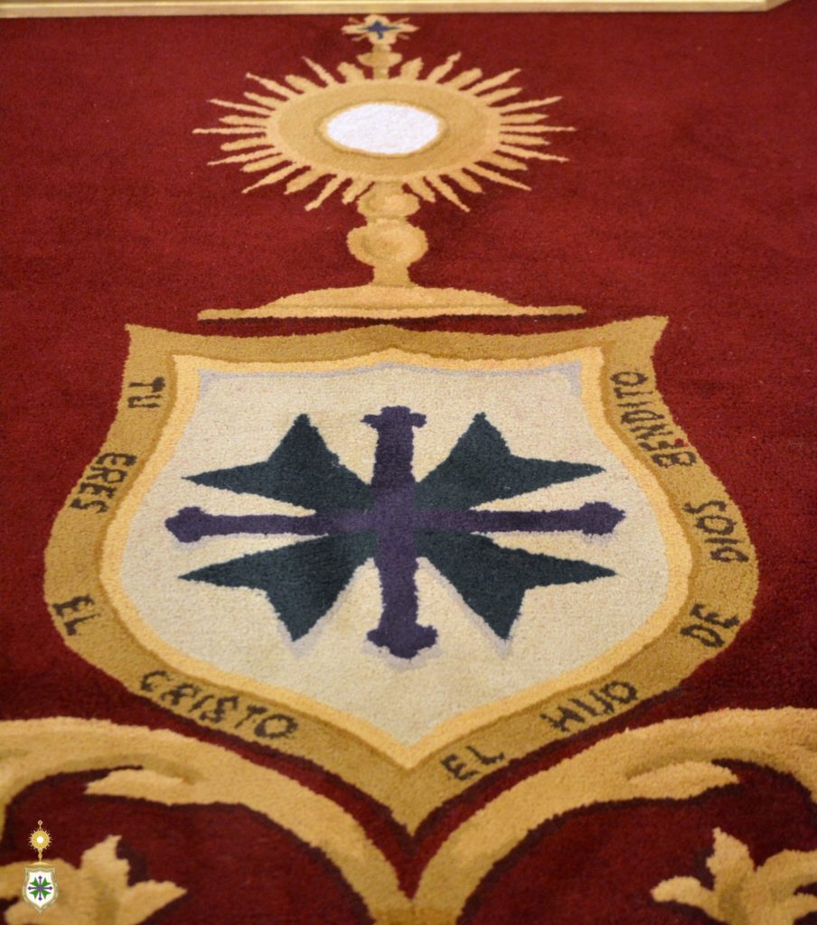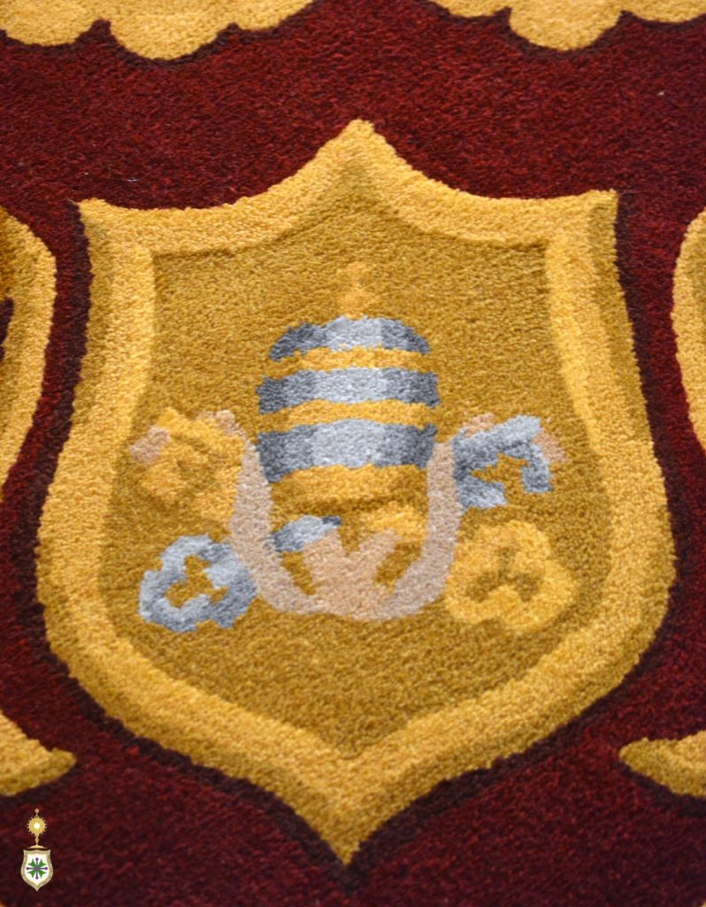 Durante la veneración a Nuestra Señora de la Salud del pasado domingo 28 de agosto, se ha estrenado una alfombra para nuestros cultos, obra de Alfombras Baldomero en la sevillana localidad de Castilleja de la Cuesta, y en la que se refleja la heráldica corporativa en su parte central, mientras que en las esquinas aparecen los siguientes elementos: a la izquierda, la Fuente de la Salud, a la derecha, la frase EGO SUM, y detrás, a la izquierda, la tiara pontificia, y a la derecha, la corona de la Casa Real de España. La pieza ha sido donada por el matrimonio Castejón Roldán, que acudió a este acto de culto, como igualmente lo hizo Diana Adán García, gerente de la empresa familiar que ha confeccionado la alfombra.