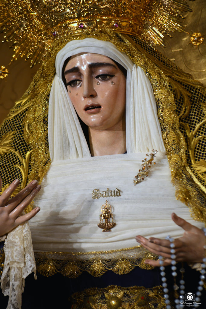 Nuestra hermandad continúa enriqueciendo su patrimonio artístico, concretamente en lo referente al ajuar de nuestra titular mariana. Este domingo 27 de septiembre, en la misa de hermandad de las 13 horas, tendrá lugar en la parroquia la bendición de la nueva saya que ha realizado para Nuestra Señora de la Salud el bordador José Librero Fernández, quien ha seguido el diseño dibujado por Miguel López Escribano. Tras su bendición, nuestra corporación mostrará la nueva pieza por sus medios de comunicación con una descripción artística de la obra.