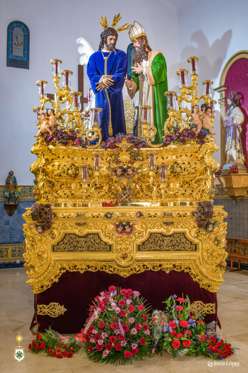 El paso de misterio donde procesiona Nuestro Padre Jesus en Su Soberano Poder ante Caifás fue realizado por Don Manuel Guzmán Bejarano, siguiendo el diseño realizado por el mismo y estrenado en su ebanistería en el año 2000, continuando con la talla hasta el año 2004 en que ya fue estrenado el dorado de las andas, siendo éste ejecutado por Don Manuel Verdugo.