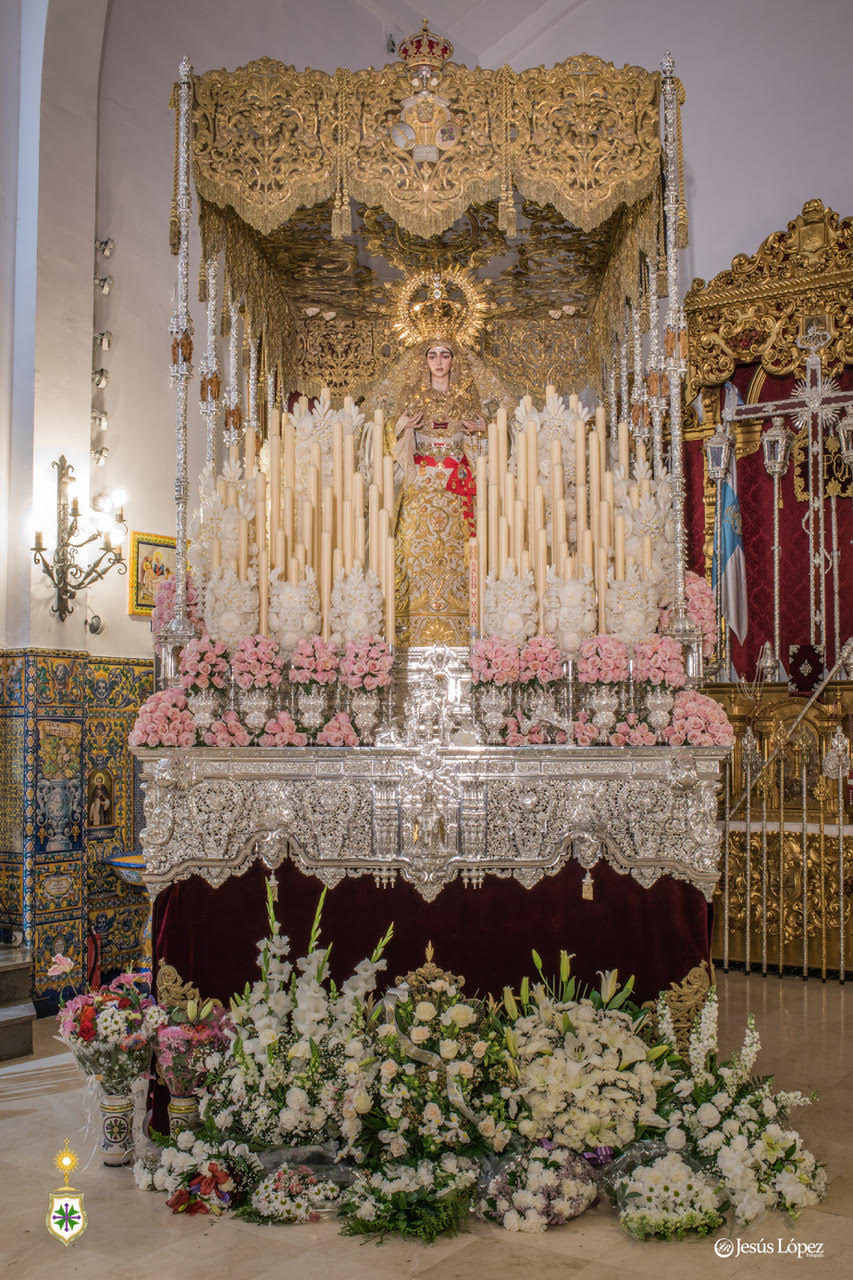 Por su mitad, tres hornacinas con cúpulas de estilo oriental, rematadas por perillas de alpaca plateada semejando un jarrón. Contiene 36 figuritas marianas y 36 arcángeles de madera de naranjo, realizadas por Don Luis Ortega Bru. Para la Semana Santa del año 1989 se realizaron 16 figuras de arcángeles en los talleres de Don Manuel Guzmán Bejarano que faltaban de las hornacinas de los varales. Se restaura en su totalidad en los Talleres de Orfebrería Triana para la Semana Santa del año 1999.