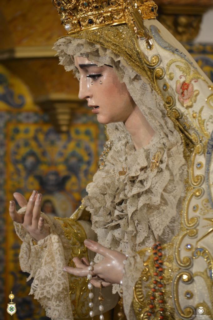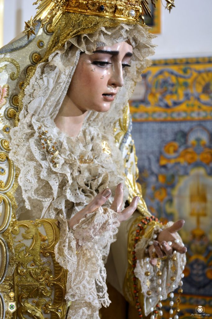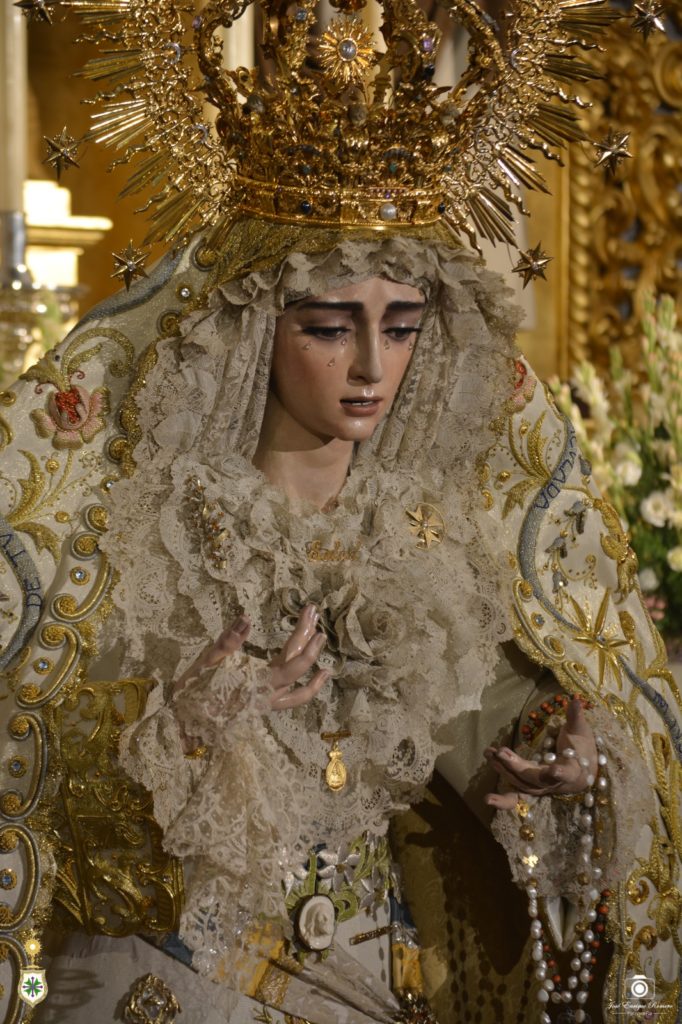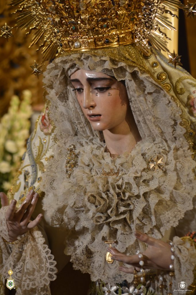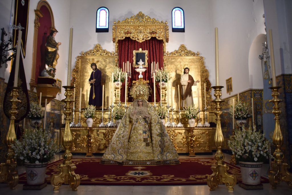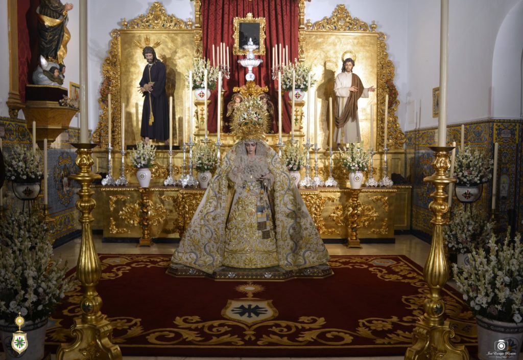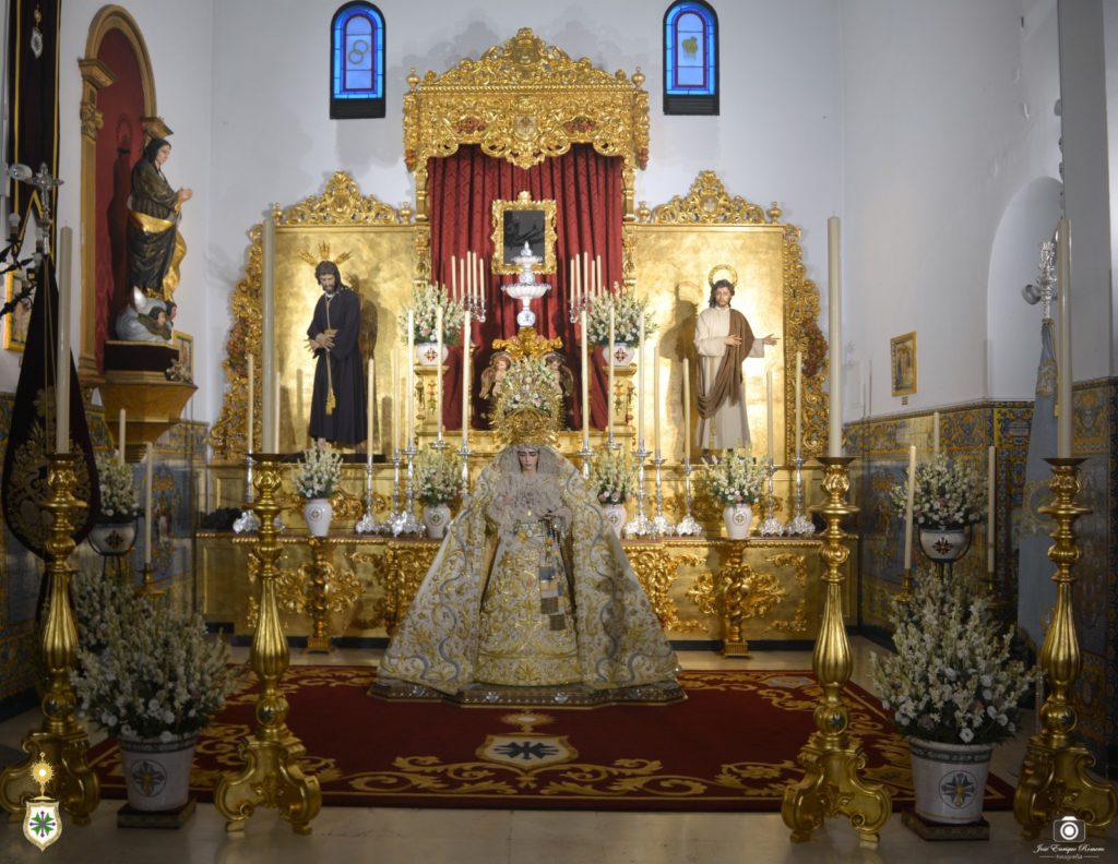 De cara al aparato de cultos, Nuestro Padre Jesús en Su Soberano Poder ocupa el lugar habitual de la Santísima Virgen, dejándose la parte central para colocar la Fuente de la Salud, tras la que se ubica un espejo en alusión a ambas letanías lauretanas del Santo Rosario: Salud de los Enfermos y Espejo de Justicia. A los pies de la fuente se muestra una de las cartelas originales del primitivo paso de misterio. En el conjunto se estrena la alfombra, obra de Alfombras Baldomero en Castilleja de la Cuesta, reflejándose la heráldica corporativa en su parte central, mientras que en las esquinas aparecen los siguientes elementos: a la izquierda, la Fuente de la Salud, a la derecha, la frase EGO SUM, y detrás, a la izquierda, la tiara pontificia, y a la derecha, la corona de la Casa Real de España.
