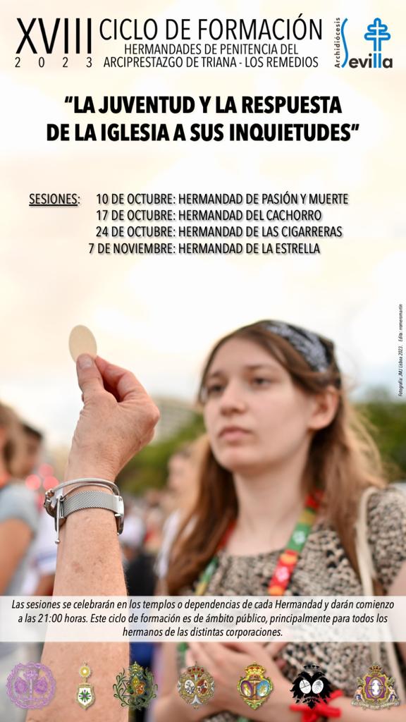 Las hermandades de penitencia del arciprestazgo de Triana-Los Remedios organizan, con el apoyo y asesoramiento de la delegación diocesana de Hermandades y Cofradías de Sevilla, el XVIII Ciclo de Formación que tiene lugar cada otoño, centrándose en esta edición en “La Juventud y la respuesta de la Iglesia a sus inquietudes”.